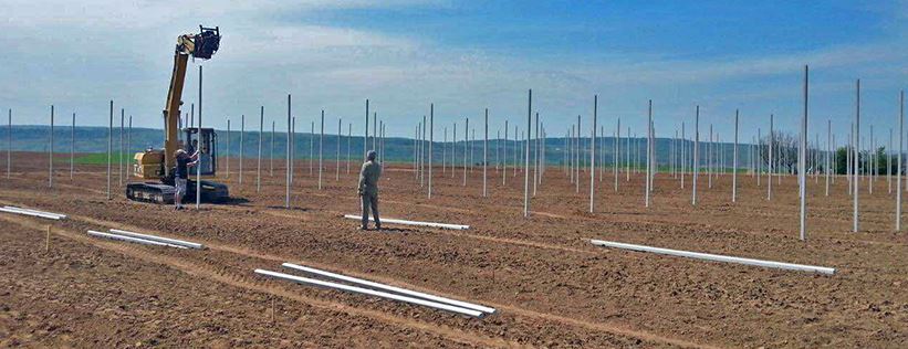 Početak postavljanja sistema protivgradnih mreža – mašinsko postavljanje stubova.